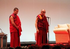 Peace and prayers were at the top of the Dalai Lama’s activities during a weekend visit to Okinawa during which he spoke to a gathering of 3,500. A soggy Sunday morning found the v...