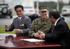 The city of Ginowan and Chatan Town have signed a pact with the U.S. military that allows local citizens to enter the Futenma Marine Corps Air Station and other U.S. military facil...